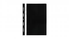 Skoroszyt wykonany z twardej, nieprzezroczystej folii PVC, dla ochrony danych osobowych. Wewnątrz zamontowano mechanizmy skoroszytowe umożliwiające wpięcie dokumentów. Wyposażony w uniwersalne, papierowe przekładki A, B, C, D, E bez opisu kategorii. Wzmocniona boczna perforacja umożliwiająca wpięcie do segregatora z dowolnym ringiem. Na przedniej stronie podłużna kieszeń z wymiennym, papierowym paskiem do opisu zawartości. Po obu stronach kieszeni dwa wycięcia ułatwiające wysuwanie paska.