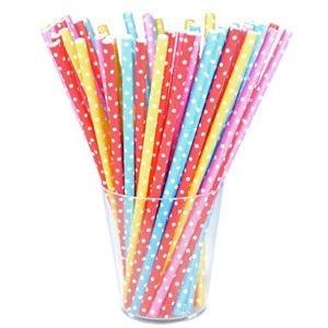 Słomki papierowe niebieskie w białe kropki 12szt