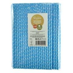 Słomki papierowe niebieskie w białe kropki 144szt