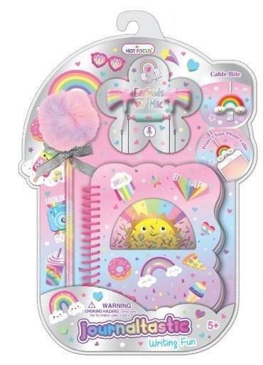 Zestaw prezentowy w dekoracyjnym opakowaniu, zawiera: - słuchawki douszne z ozdobnymi końcówkami - zatyczkę w zabawnym kształcie do kabla do telefonu, która ochroni kabel np. podczas ładowania - notatnik na spirali z kartkami w linie z ozdobami 3D na okładce - długopis z pomponem Wiek: 5+ SPECYFIKACJA SŁUCHAWEK: Pasmo częstotliwości: 20Hz ~ 20KHz Natężenie dźwięku: 856 dB na 1 KHz, 6mW Rezystancja: 3215% Długość kabla: 120cm Wtyczka jack: 3,5mm audio jack Max. moc wejściowa: 10mW Rozmiar głośnika: 10mm