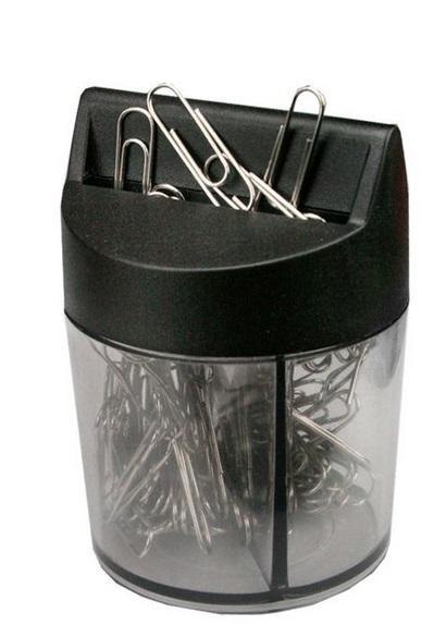 Spinacze biurowe okrągłe, kolor: srebrne, długość: 28 mm, 100 sztuk w magnetycznym pudełku.