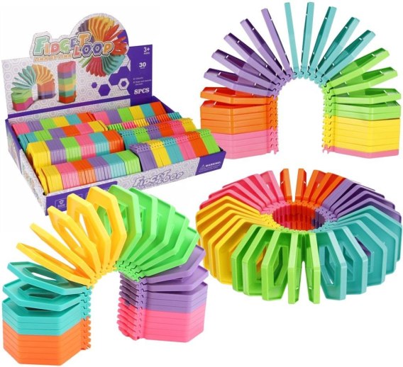 Sprężyna ćwiczy koordynację wzrokowo-ruchową zapewniając przy tym mnóstwo zabawy. Ta tęczowa wersja umożliwia łączenia nie tylko jej końców ale również kilku sztuk ze sobą.