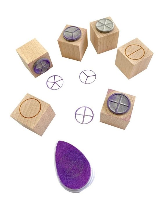 Ale to nie wszystko! Druga strona każdego stempla posiada gumowe odbicie tego samego koła z ułamkami, gotowe do zostawienia wyraźnego śladu na kartce wystarczy stemple delikatnie oprószyć dołączonym tuszem i gotowe! To doskonała pomoc dydaktyczna do urozmaicenia lekcji matematyki, interaktywnych gier edukacyjnych czy nawet domowych zabaw w liczenie.