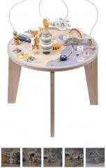 Twój maluch będzie się świetnie bawił z tym radosnym, drewnianym stolikiem zabawowym Jack & Jacky. Znajdziesz tu mnóstwo atrakcji do odkrycia, takich jak tworzenie muzyki, układanie, układanie puzzli, wirowanie, zjeżdżanie, łowienie rybek i spirala z koralików.