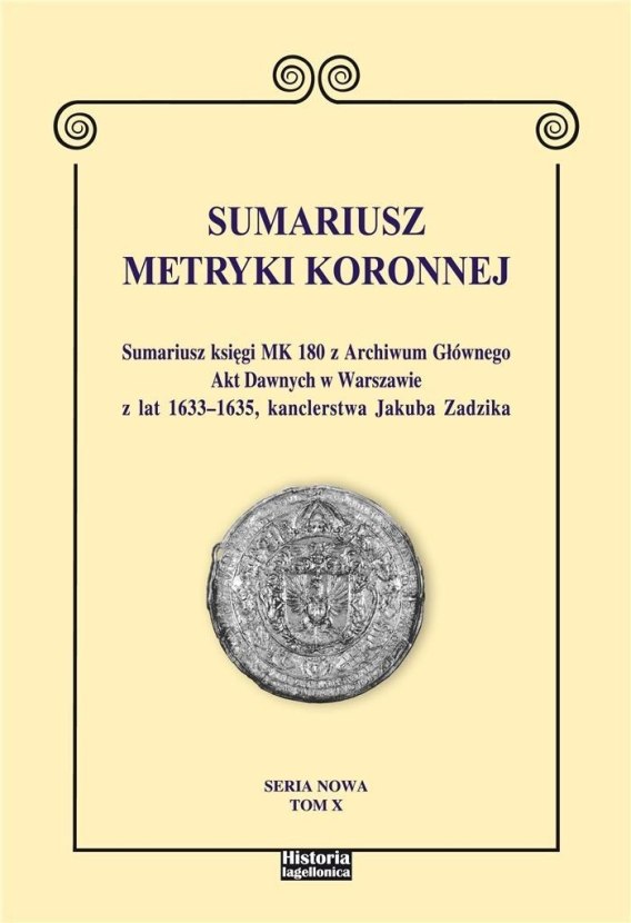 Sumariusz księgi MK 180 z Archiwum Głównego Akt Dawnych w Warszawie z lat 1633-1635, kanclerstwa Jakuba Zadzika.