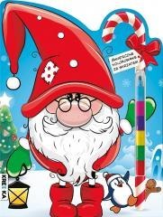 Nowoczesna książeczka w kształcie mikołajkowego skrzata, z naklejkami oraz kredką segmentową, ukrytą w choinkowej laseczce, zachwyci nawet najbardziej wymagającego małego pasjonata kolorowanek o tematyce świątecznej.