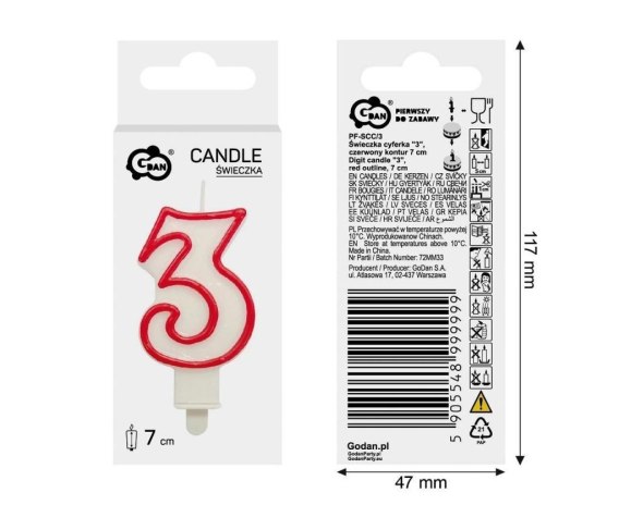 ŚWIECZKA CYFRA 3, CZERWONY KONTUR