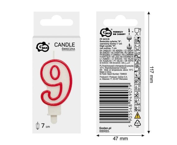 ŚWIECZKA CYFRA 9, CZERWONY KONTUR