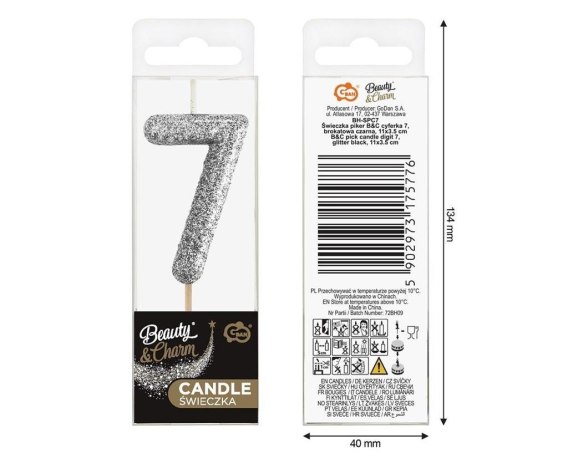 Świeczka piker 7 czarna brokatowa 11x3.5 cm