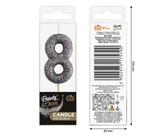 Świeczka piker 8 czarna brokatowa 11x3.5 cm