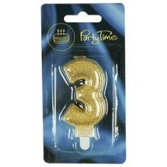 Świeczka cyferka brokatowa na podstawce Wysokość świeczki 7,5 cm Dostępne kolory: złoty, srebrny