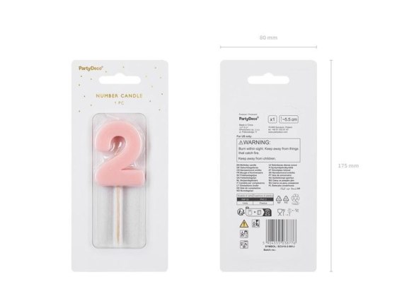 Świeczka urodzinowa Cyferka 2, w kolorze jasnoróżowym, rozmiar ok. 5.5 cm.