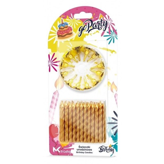 Świeczki urodzinowe 12szt złote spiralne