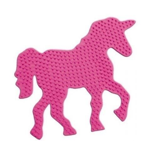 Specjalna podstawka z wypustkami do ułożenia mozaiki z koralików w kształcie jednorożca. Po ułożeniu koralików na szablonie, należy przeprasować je przez pergamin aby otrzymać trwały obrazek. Szablon można wykorzystywać wielokrotnie. Wyprodukowano w Holandii.