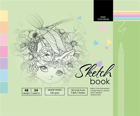 Szkicownik 197x145 mm, 48 stron, gramatura papieru 100g/m2. Ołówki, kredki, markery, mazaki, pędzle - tych rzeczy możesz użyć w tym szkicowniku! Namaluj swoje marzenia!