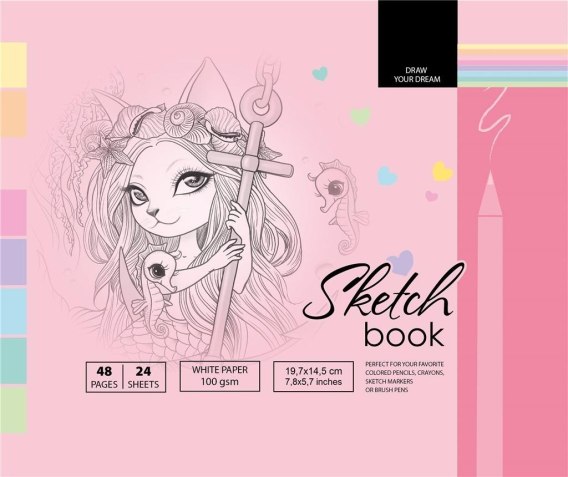 Szkicownik 197x145 mm, 48 stron, gramatura papieru 100g/m2. Ołówki, kredki, markery, mazaki, pędzle - tych rzeczy możesz użyć w tym szkicowniku! Namaluj swoje marzenia!