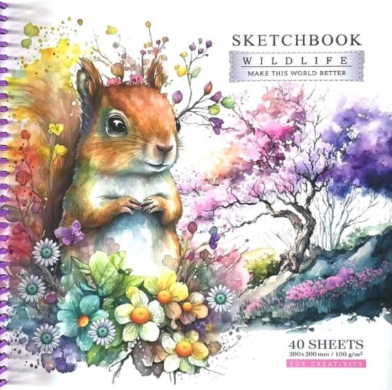Szkicownik N9664 200x200 40 kartek gładki Wiewiórka