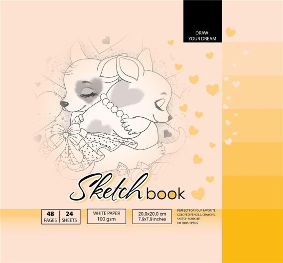 Szkicownik 200x200 mm, 48 stron, gramatura papieru 100g/m2. Ołówki, kredki, markery, mazaki, pędzle - tych rzeczy możesz użyć w tym szkicowniku! Namaluj swoje marzenia!