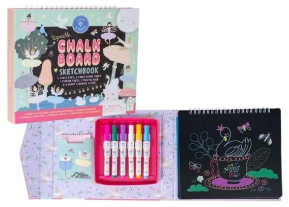 Zabawa szkicownikiem z kredowymi pisakami, idealna dla małych artystów! To genialny szkicownik z kartami, które można pokolorować pisakami na bazie kredy. Szkicownik zawiera 5 kart z gotowymi ilustracjami do pokolorowania i 3 puste karty, na których można tworzyć własne wzory i obrazki. Znajduje się tam również arkusz kalki kreślarskiej oraz arkusz szablonów z baletnicą, zaczarowanym łabędziem i innymi. Oba te arkusze można przypiąć do spirali szkicownika. W zestawie znajduje się 6 kolorowych pisaków kredowych oraz ściereczka do czyszczenia, dzięki której można zetrzeć karty i rozpocząć kreatywną zabawę od początku.