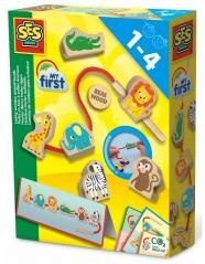 Z drewnianym zestawem dziecko może odkrywać zmysłami kolory i kształty poprzez nawlekanie na sznurek dzikich zwierząt.
