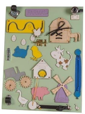 Tablica kolorowa rozkładana - jedna strona manipulacyjna, druga strona kredowa Wyposażenie strony manipulacyjnej: