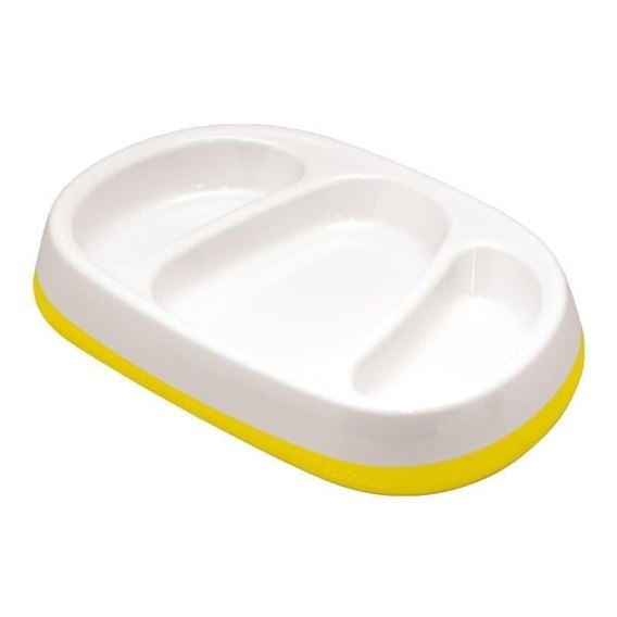 Talerz z trzema przegródkami pozwala łatwo kontrolować porcje i rozdzielać różne rodzaje jedzenia dla wybrednych smakoszy.
