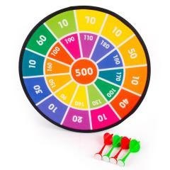 W zestawie tarcza oraz 4 sztuki kolorowych rzutek