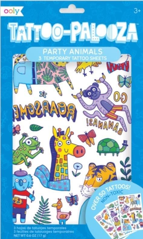 Jeśli masz coś do powiedzenia, możesz to wyrazić za pomocą zmywalnych tatuaży Tattoo-Palooza. Zestaw Wesołe Zwierzaki zawiera 3 arkusze tymczasowych tatuaży; to ponad 50 kolorowych wzorów! W tym zestawie znajdziesz imprezowe tukany, leniwce, koale i wiele innych. Tattoo-Paloozas są łatwe w aplikacji, utrzymują się do 5 dni, są łatwe do usunięcia i nietoksyczne.
