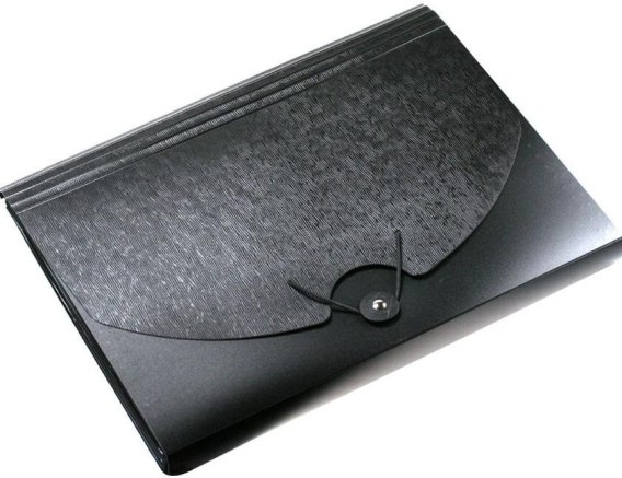 Wykonana z trwałego polipropylenu, wewnątrz 13 przegródek. Zapięcie na gumkę. W zestawie kolorowe kartoniki opisowe. Kieszeń na wizytówkę. Pakowana po 1 sztuce w woreczek foliowy. Kolor: czarna.