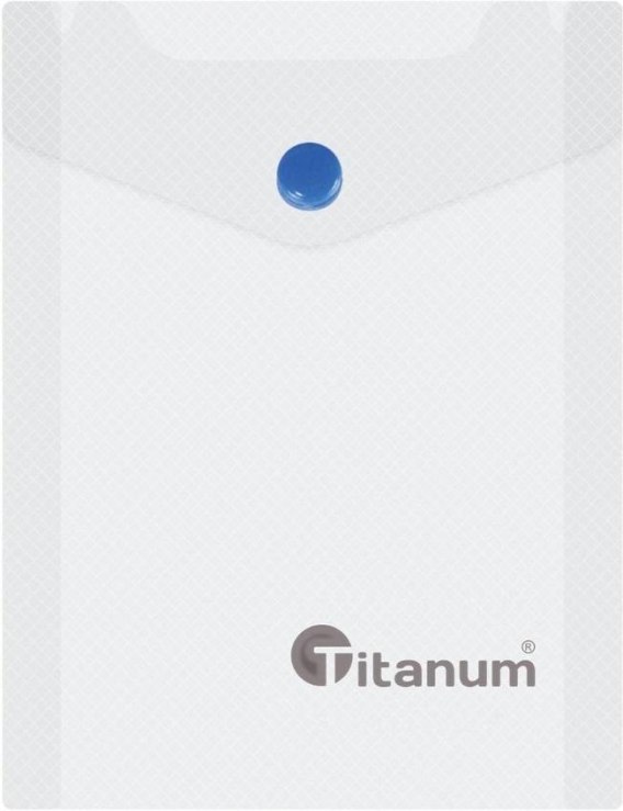 Teczka z polipropylenowej folii o transparentnej, lekko matowej, prążkowanej fakturze, pionowa, zapinana na zatrzask, format A6.