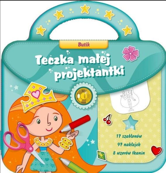 ARTYSTYCZNY ZESTAW dla małych projektantek mody. W poręcznej książeczce w kształcie teczuszki z rączką, którą można zabrać ze sobą w dowolne miejce, zamknięte jest wszystko, co potrzebne do przygotowywania wspaniałych kreacji: - szablony z częściami garderoby, które posłużą jako wzory (wykroje) do odrysowywania zarówno na kartach z modelkami, jak i papierach udających tkaniny; - arkusze kolorowych, ozdobnych papierów udających tkaniny - do samodzielnego przygotowania części garderoby modelek; - arkusze z kolorowymi naklejkami, na których małe projektantki znajdą buty oraz różne dodatki zarówno do strojów, jak i modelek. Te wyjątkowe ubieranki to atrakcyjna propozycja dla młodych stylistek, które lubią twórcze zabawy z naklejkami w kształcie części garderoby i różnorodnych akcesoriów. Korzystając z książeczek, dziewczynki rozwiną swoje zdolności manualne i nauczą się dobierać stroje odpowiednie do okazji. Kolorowe, zróżnicowane naklejki, które zachęcają do eksperymentowania ze stylami i puszczenia wodzów wyobraźni, sprawią, że zabawa będzie trwała bardzo długo!