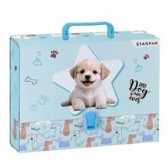 Teczka z rączką z kolekcji STARPAK z serii Cuties Doggy. Sztywna teczka wykonana z grubego, lakierowanego kartonu. Zamykana na plastikowy klips. Teczkę wyposażono w solidną rączkę. Teczka o szerokości grzbietu 5,5 cm. Idealnie sprawdzi się na zajęciach pozaszkolnych czy do przechowywania prac dziecka. Zapoznaj się również z innymi produktami z tej serii! Wymiary/waga: wymiary produktu (szer. x wys. x gł.)[cm]: 32x25x5,5, waga produktu [kg]: 0,42 kg. Produkt przeznaczony dla dzieci w wieku: 3+. .