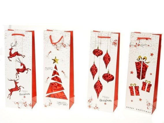 Torebka na butelkę z motywem świątecznym 36 x 13 x 8,5 cm.