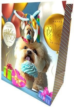 Torebka ozdobna matowa 18x23x10cm urodziny pies GB23131.