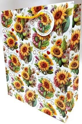 Torebka ozdobna matowa 26x32x12cm słoneczniki