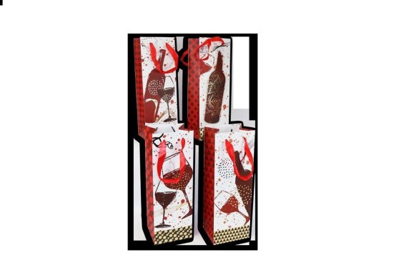 Torebka prezentowa na butelkę. Gramatura papieru 210, torebka laminowana folią mat z dodatkowym uszlachetnieniem. Wielkość: 300x390x120 mm"