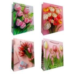 Torebka prezentowa uniwersal L Tulipany metal mix