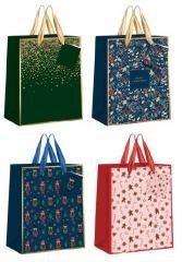 Wyjątkowa torebka do pakowania prezentów. Wykonana z wysokiej jakości papieru 190 g. Eleganckie, matowe wykończenie. Złote, połyskujące detale w technologii hot-stamping. Wzmocniony, sztywny spód. Bilecik z miejscem na życzenia lub imię obdarowywanej osoby. Uchwyty wykonane z atłasowej wstążki. Idealna do szybkiego i efektywnego pakowania prezentów.