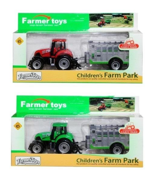 Plastikowy traktor z przyczepą. Produkt występuje w kilku wersjach kolorystycznych, wybierany losowo. Cena dotyczy jednej sztuki. Produkt zapakowany w kartonowe opakowanie z przezroczystym okienkiem. Zabawka przeznaczona dla dzieci od 3 lat.
