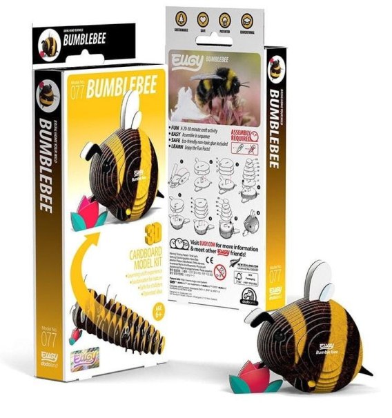 Eugy zaprojektowane w Nowej Zelandii są wykonane z przyjaznego dla środowiska kartonu pochodzącego z recyklingu i farby na bazie ryżu. Zestaw zawiera ponumerowane elementy układanki, nietoksyczny klej oraz instrukcję do zbudowania trzmiela. Zbierz całą serię zwierząt, ptaków, dinozaurów i wiele innych. Dla dzieci w wieku 6 lat+.