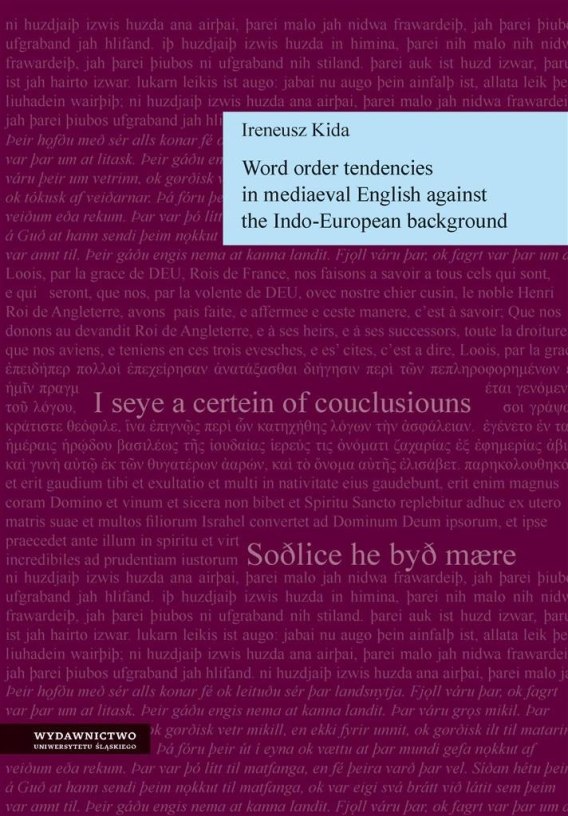 Głównym celem pracy Ireneusza Kidy jest omówienie zmian w szyku zdaniowym średniowiecznej angielszczyzny na tle wybranych języków indoeuropejskich. Książka prezentuje jednocześnie autorską metodę tworzenia korpusu tekstowego, służącego do badania zmian składniowych z OV na VO w średnio-angielszczyźnie, a także między innymi do badania tekstów staronordyckich i anglo-normańskich. Rozdział pierwszy szczegółowo omawia sposób, w jaki konstruowany był ów korpus. W rozdziale drugim dokonano z kolei analizy struktury szyku wyrazów w najdawniejszych inskrypcjach runicznych oraz w tekstach najstarszych języków germańskich pisanych prozą, a również omówiono w nim pragermański szyk zdaniowy. Rozdziały trzeci i czwarty prowadzą nas natomiast do wniosku, że definitywna zmiana na szyk VO w języku angielskim zaszła w XII i XIII wieku oraz że generalnie dokonywała się ona szybciej w zdaniach głównych niż w zdaniach pobocznych. W kończącym pracę rozdziale piątym autor dochodzi również do konkretnych wniosków dotyczących trajektorii zmian szyku wyrazów w języku angielskim w szerszym kontekście niektórych języków indoeuropejskich.