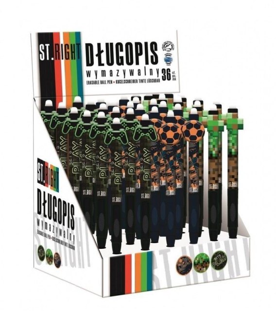 Długopis wymazywalny automatyczny z ergonomicznym uchwytem - 36 szt. display mix chłopięcy ST.RIGHT
