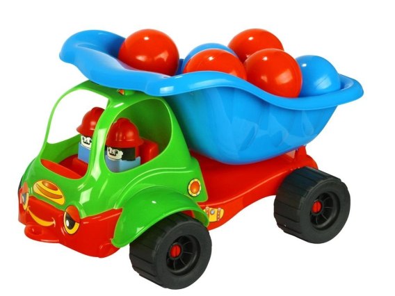Zestaw składa się z wywrotki "bączek" z kierowcą, która dodatkowo została wzbogacona o 9 piłeczek basenowych różnych kolorów. Produkt wykonany jest z bezpiecznych i trwałych materiałów, dzięki czemu odporny jest na warunki atmosferyczne. Produkt oferowany jest w różnych wariantach kolorystycznych.