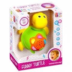 Muzyczna Zabawka ZABAWNY ŻÓŁW to edukacyjna zabawka dla dziecka od 18 m-ca. Kolorowe przyciski, wygrywające różnorodne melodie, oraz migoczące, barwne światełka gwarantują doskonałą zabawę, jednocześnie stymulując zmysły wzroku, słuchu, percepcji oraz dotyku. Zabawka wykonana z wysokiej jakości plastiku. Nie posiada ftalanów.
