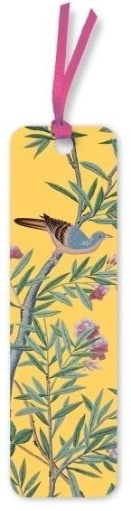 Pozłacana, papierowa zakładka do książki z ozdobną wstążką.