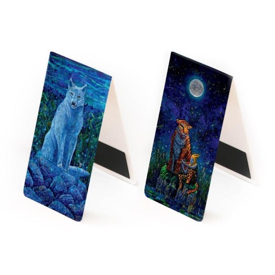 Dwa wyjątkowe obrazy Pieśń Zorzy i Zaklinacz Tygrysów Noc autorstwa Rocha Urbaniaka teraz na zakładkach magnetycznych! Zaokrąglone rogi, papier kreda 350 g, folia zabezpieczająca błysk, folia magnetyczna na kawałku zakładki