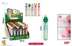 Jedna strona to zakreślacz ze skuwką ze świąteczną figurkę. Korpus długopisu jest w jednolitym kolorze pasującym do tuszu. Na drugim końcu znajduje się stempel z motywem świątecznym. Dostępny w 6 kolorach.
