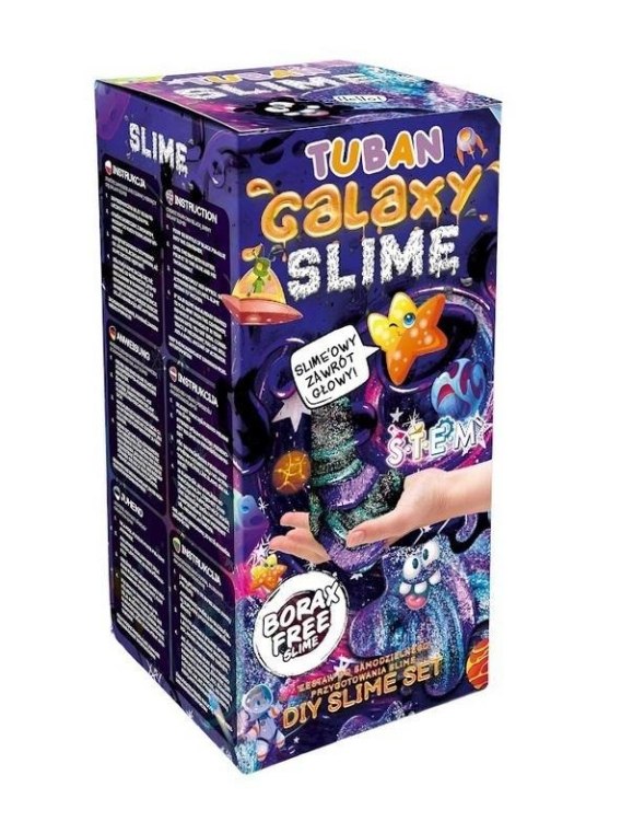 Zestaw do stworzenia glutka, inspirowanego wyglądem rozgwieżdżonego, nocnego nieba. Dzieci, łącząc składniki zestawu, mają okazję przyjrzeć się bliżej procesom chemicznym, poznać różne konsystencje i doświadczyć wrażeń sensorycznych. Powstały SLIME, mieniący się różnobarwnymi kolorami brokatów mineralnych, zachwyci każde dziecko. Zestaw zawiera wszystko, co niezbędne do przygotowania SLIME.