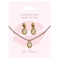 "Pozłacany zestaw biżuterii na Walentynki - łańcuszek i kolczyki Elegancki zestaw biżuterii, który zachwyci każdą kobietę. Pozłacany łańcuszek i kolczyki o delikatnym owalnym kształcie dodają blasku i subtelnie podkreślają urodę. Wykonane ze stopu cynku i metalu, pięknie lśnią w świetle, oferując ponadczasowy urok. Zestaw zapakowany na eleganckiej podkładce, gotowy do wręczenia na Walentynki. To idealny wybór dla kobiety ceniącej klasykę z romantycznym akcentem. SPECYFIKACJA: Pozłacany łańcuszek i kolczyki Romantyczna podkładka Stop cynku i metalu Kolor: złoty"
