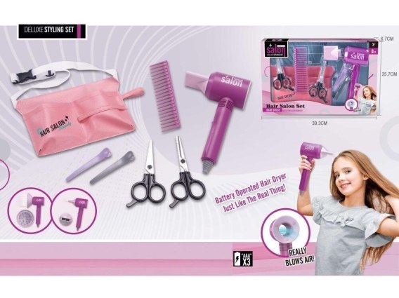 Zestaw fryzjerski z suszarką na baterie.